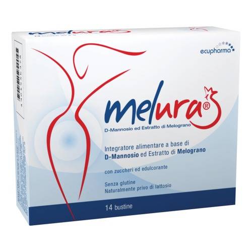 melura Integratore alimentare che contiene estratto secco di Melagrana e D-Mannosio. Con zucchero ed edulcorante. Senza glutine. Ingredienti per 1 bustina Melagrana (Punica granatum L.) estratto secco 250 mg D-mannosio 1,5 g Modalità d'uso 1-2 bustine al giorno. Avvertenze Non superare la dose giornaliera raccomandata. Tenere fuori dalla portata dei bambini al di sotto dei 3 anni di età. Gli integratori non vanno intesi come sostituti di una dieta variata. Formato 14 bustine. Cod. 406901